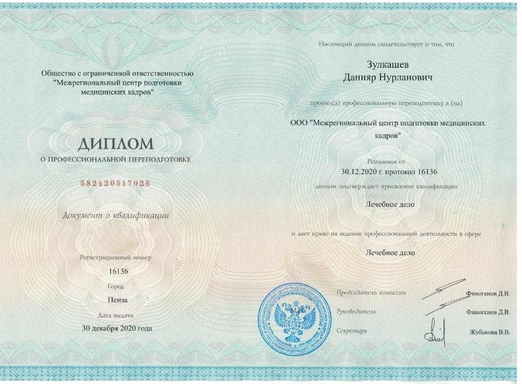 Меня зовут Зулкашев Данияр Нурланович, я — фельдшер выездной наркологической бригады в наркологической клинике "Плюс" в Александровске. Я стремлюсь помогать людям, оказывая квалифицированную медицинскую помощь в самых разных ситуациях, и верю, что каждый пациент заслуживает внимания и поддержки на пути к выздоровлению.